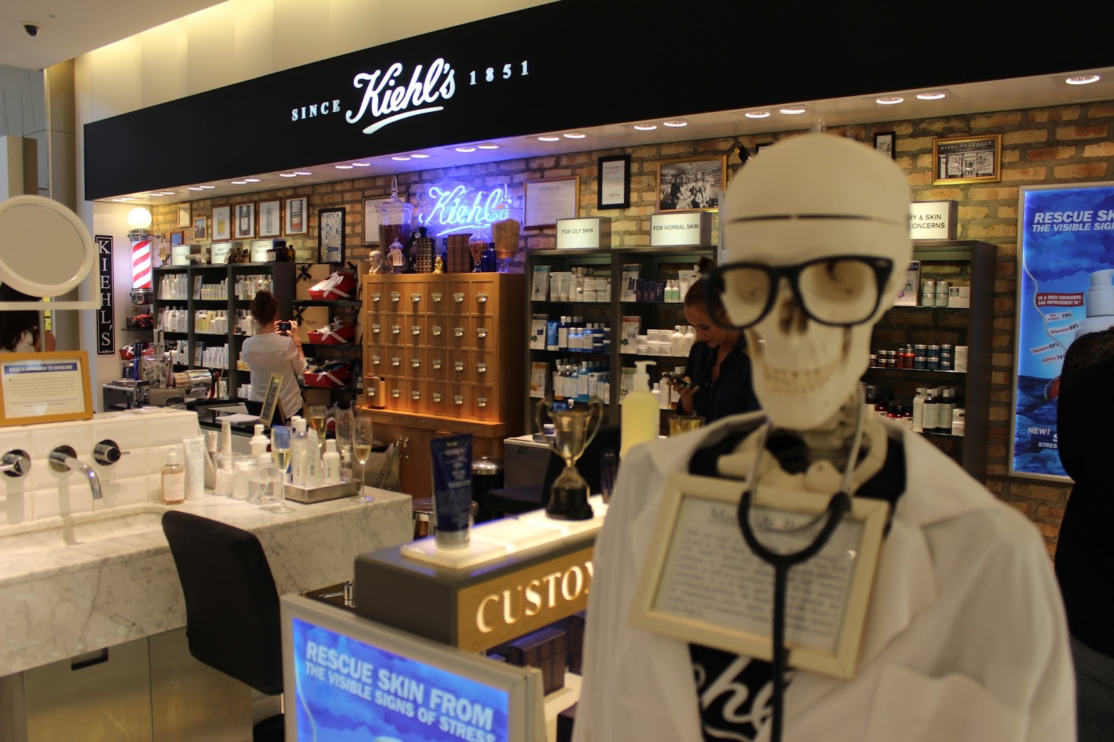 Over all, it was a lovely, chilled night having a glass of bubbly and talking beauty treatments with some fellow bloggers. A far cry from the pretentious atmosphere I felt there might have been! In fact, despite being such a massive luxury brand, Kiehl’s seem to have an air of fun about them. Check out my pictures of “Mr Bones” for example – apparently it’s tradition to have a doctor’s skeleton at every concession to resemble the very first Kiehl’ss store in new york. Kinda cute, huh?