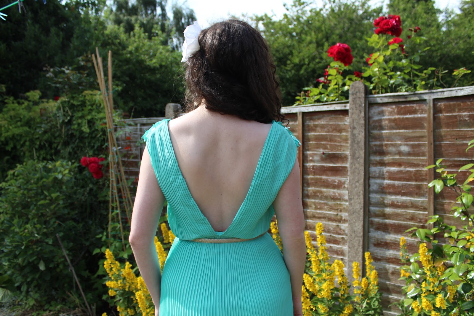 The dress is full of lovely little surprise details that really help to give the look a subtle vintage feel, such as the retro, pastel colour and soft pleats. Plus, instead of being overtly revealing, the belt helps to create a classic feminine shape on almost any figure (and if not, that’s cool too!). Also, the deep back is the perfect way to show a little skin whilst remaining sophisticated – I actually prefer to leave a little to the imagination!