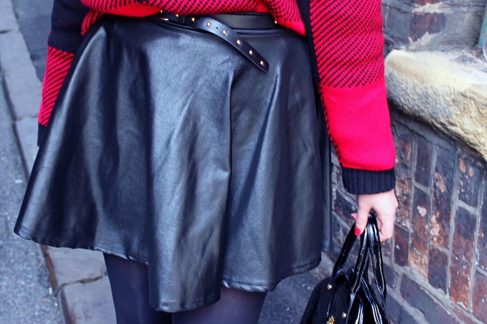 Because the knitwear is such a statement piece in this look, I was conscious not to override it with too many other prints. No matter how many fashion bloggers will tell you that clashing prints is all the rage this year, I still reckon it’s best to keep things simple at times. So simple it was. My pleather skater skirt from Prodigy Red was the ideal finishing touch – keeping things all black but softening the look with a floaty fit. Ideal.